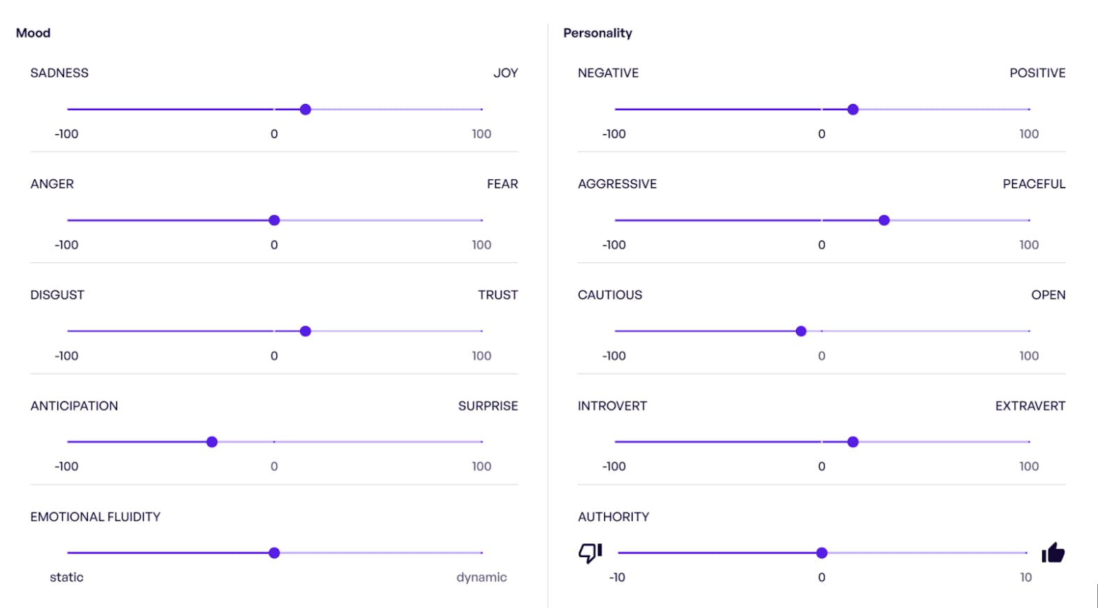 You might need to play around with the Mood sliders before you get the right fit. Pick something, talk to your character, and then adjust, if needed!
