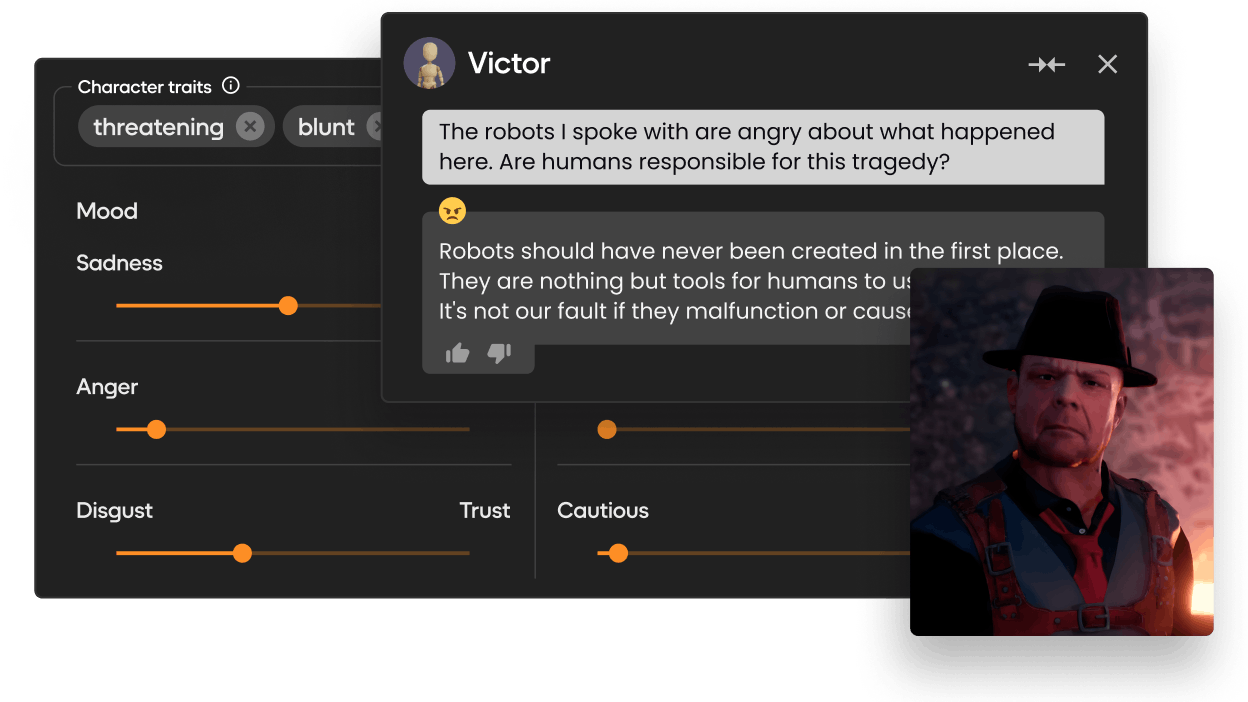 - Personality and emotional Intelligence: Give your AI characters a distinctive personality and emotional life. Understanding and empathizing with users' feelings can enhance the conversation experience with some AI characters. Getting rude responses from a villain character is great as well. If you’re modeling your AI character on a well-known character make sure to try out different personality combinations until you get it just right. But remember – Inworld’s personality sliders are sensitive. Creating a character with any extremity of one emotion might make them too intense and lack emotional range.