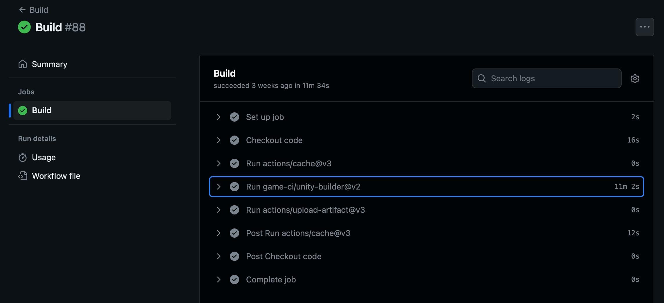 Note: game-ci is a community-driven project that aims to simplify the process of integrating CI/CD practices into game development. unity-builder is a specific action within the game-ci suite that’s tailored for Unity projects. This GitHub Action developed by the community features version specification, multi-platform support, and custom build methods. For more information on unity-builder check out their GitHub repo here.