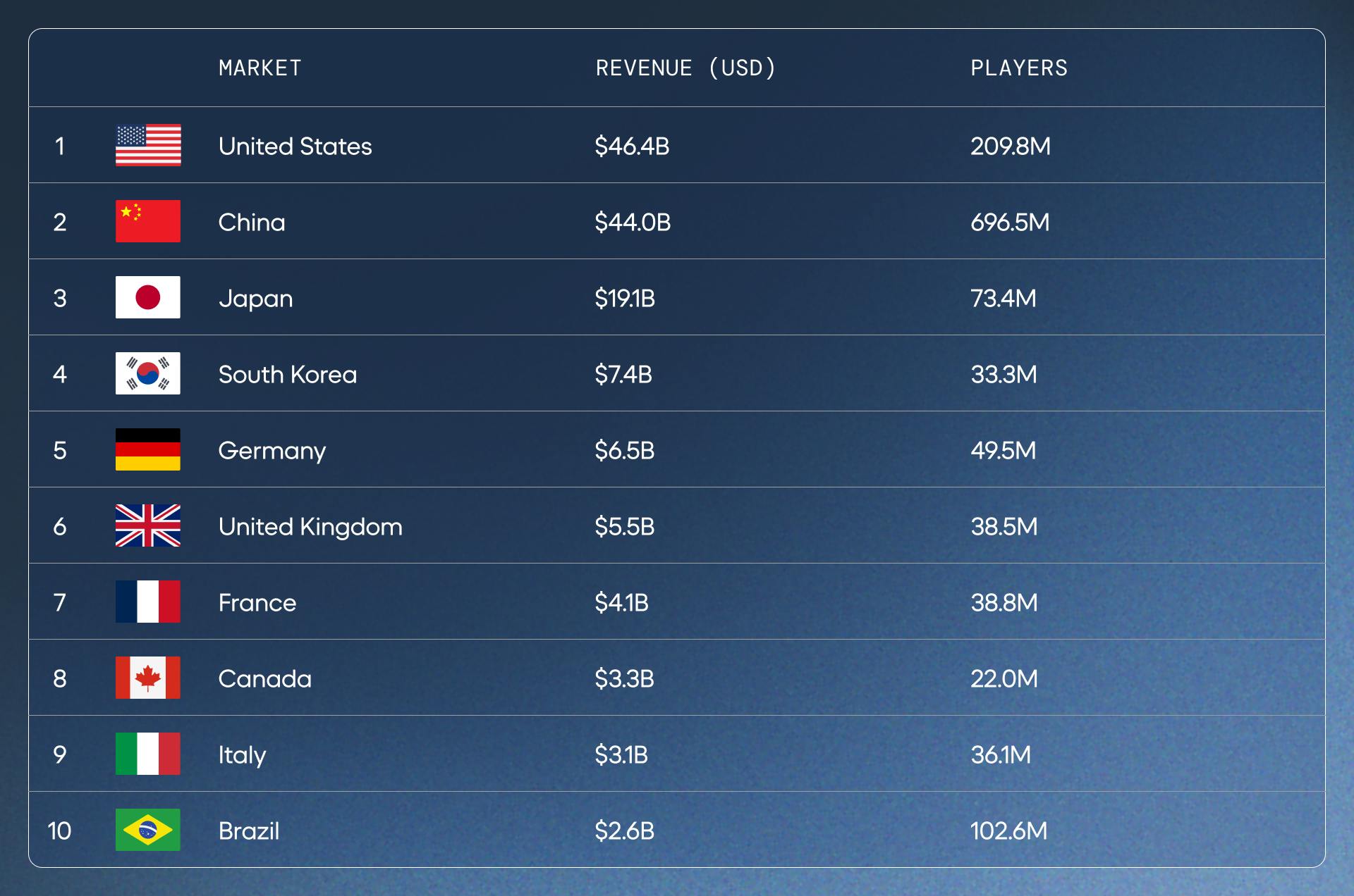 According to Newzoo, only three of the world’s top 10 gaming markets have English as an official language. While these markets boast an impressive 270 million players and $55.3 billion in revenue combined, the rest of the gaming markets on the list are home to 1 billion players and $86.8 billion gaming revenue.