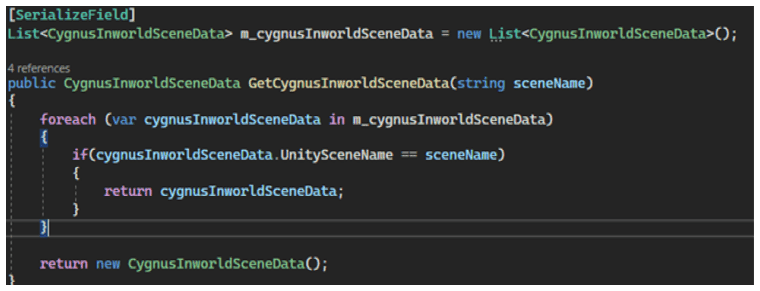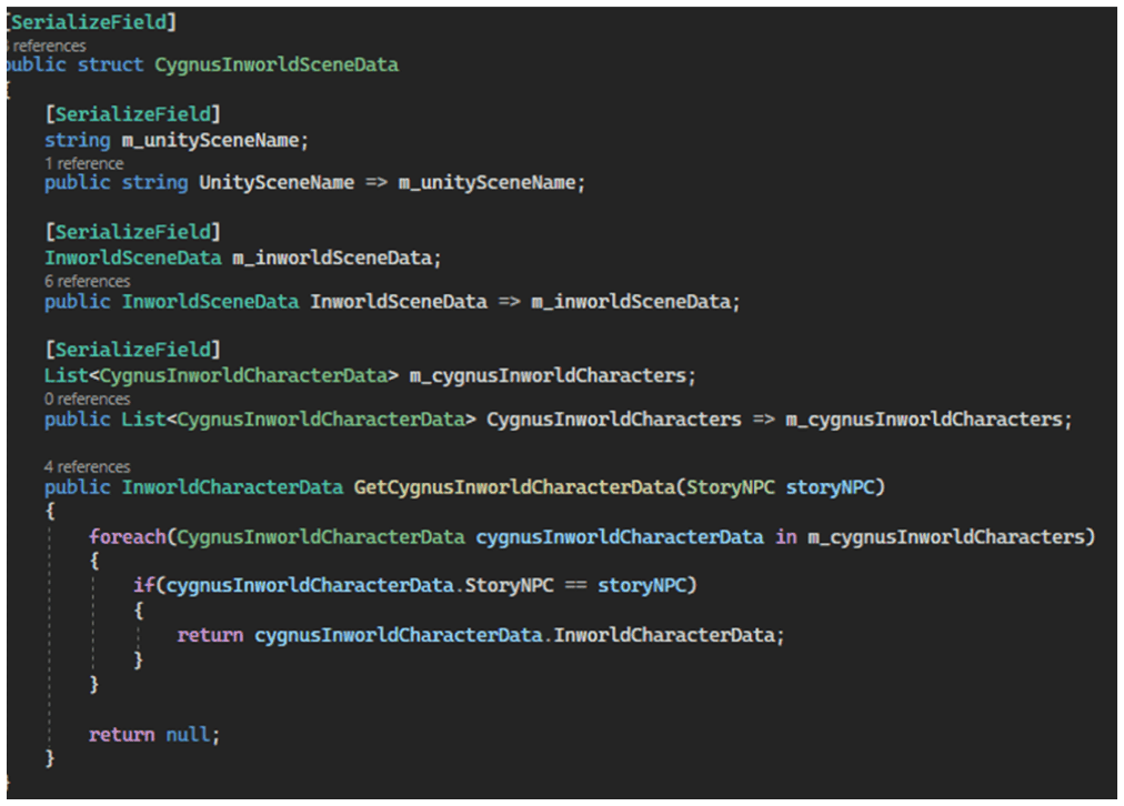 The code below illustrates the data structure they defined: CygnusInworldSceneData.