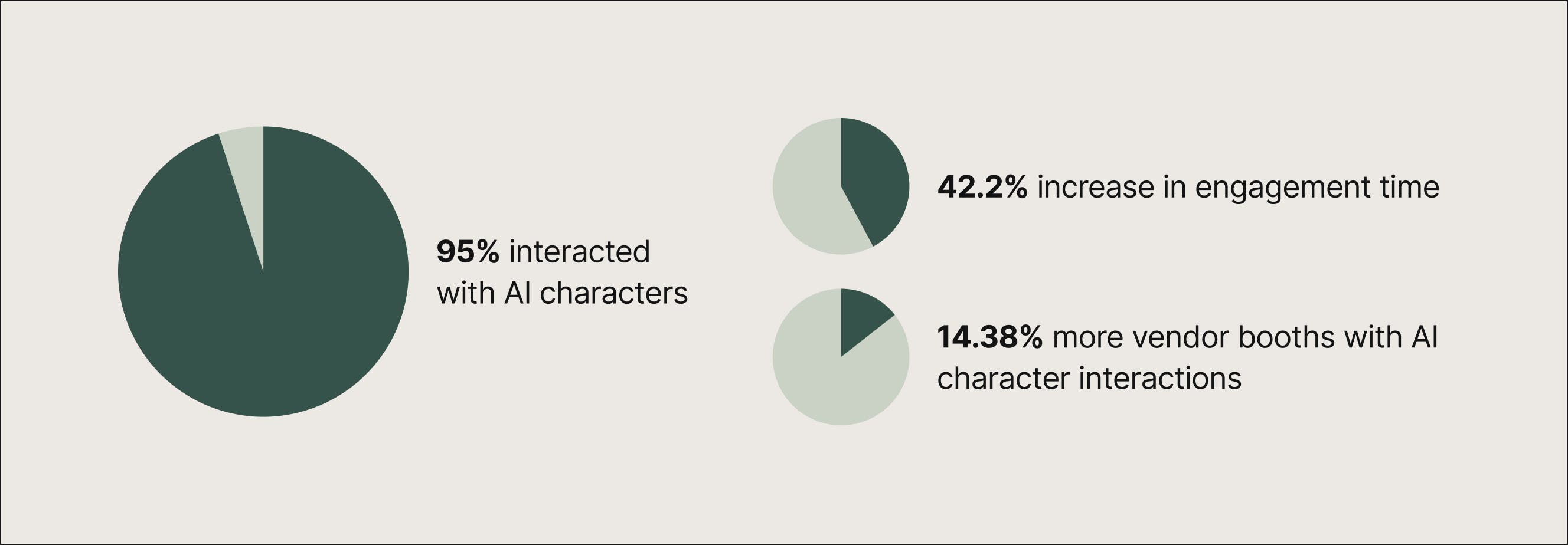 - Deeper engagement: 36% of attendees engaged in longer conversations with the characters, averaging 5.2 conversations per user.