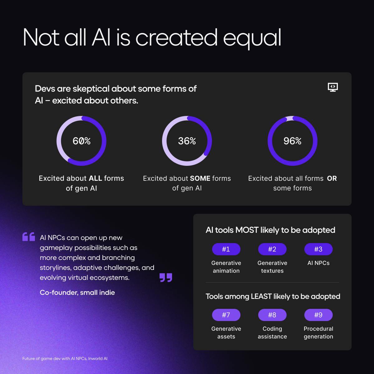 Given that game devs have a better read on their own studio’s attitudes towards AI NPCs, it’s likely that industry adoption will be broader than respondents anticipate.